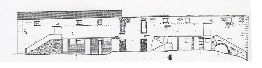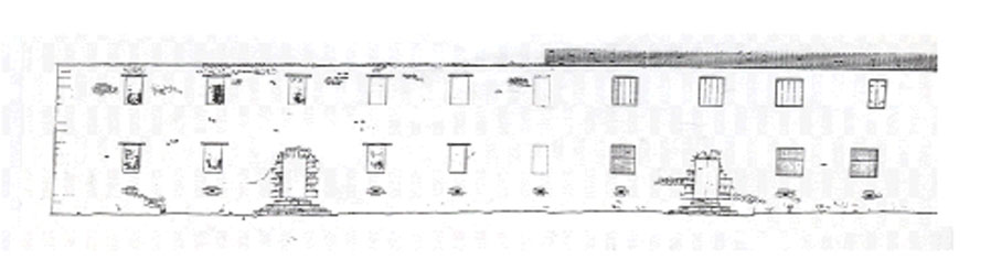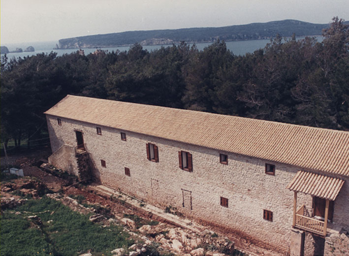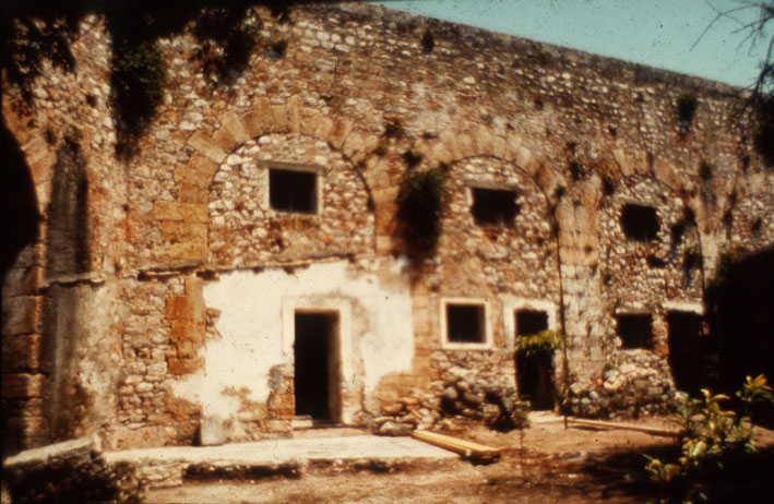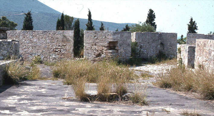 Το επίμηκες αυτό κτήριο, διαστάσεων 47×16 μ., με δίριχτη στέγη, είχε δύο εισόδους στη δυτική πλευρά του ισογείου, ενώ ο όροφος ήταν προσιτός από δύο εξωτερικές λίθινες κλίμακες με κτιστή κουπαστή στις δύο άκρες της ανατολικής μακριάς πλευράς. Το βόρειο ήμισυ του κτηρίου διατηρούσε μόνον τους εξωτερικούς τοίχους (εικ. 22, 23α-β, 24α-β, 25α-β), ενώ το νότιο, σε κατάσταση εγκατάλειψης, χρησιμοποιούνταν ως αποθήκη αρχαίων.