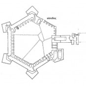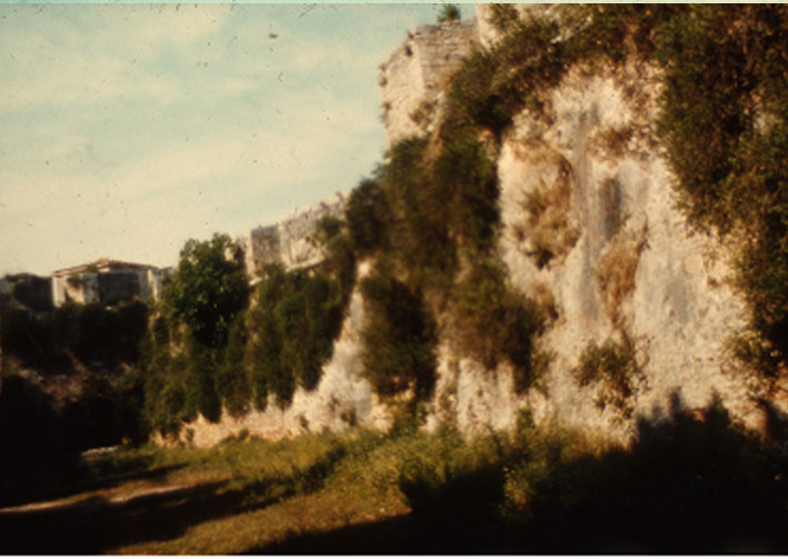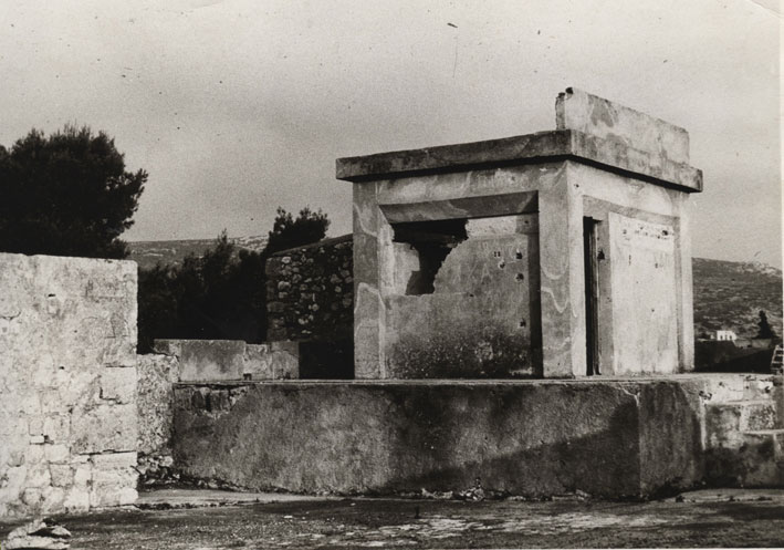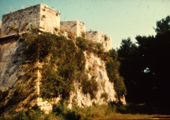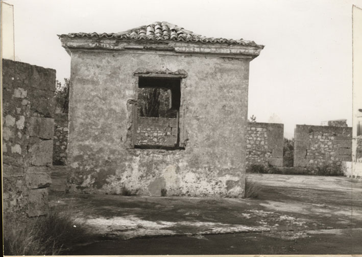 Στον προμαχώνα V μάλιστα, ήταν τόσο έντονος ο τραυματισμός του λιθόστρωτου δαπέδου από τη θεμελίωση του φυλακίου της Χωροφυλακής, ώστε οι υποκείμενοι δύο μεγάλοι και εν επαφή θόλοι (αρχαιολογικές αποθήκες σήμερα), παρουσίαζαν εξαιρετικά αυξημένη υγρασία και γι’ αυτόν το λόγο υποχρεωθήκαμε όχι μόνο να κατεδαφίσουμε το ίδιο το φυλάκιο, αλλά, αφαιρώντας την αρχική επίχωση, να φτάσουμε μέχρι την εξωτερική επιφάνεια των θόλων. Με το έργο αυτό αποκαλύφθηκε το αρχικό σύστημα στεγάνωσης, μια δίριχτη κατασκευή καλυμμένη από παχύ στρώμα του παραδοσιακού μείγματος, γνωστού ως κουρασάνι. Η εικόνα αυτή της στέγασης των θόλων, εξαιτίας της μοναδικότητάς της, κρίθηκε σκόπιμο να διατηρηθεί για εκπαιδευτικούς σκοπούς (εικ. 19).