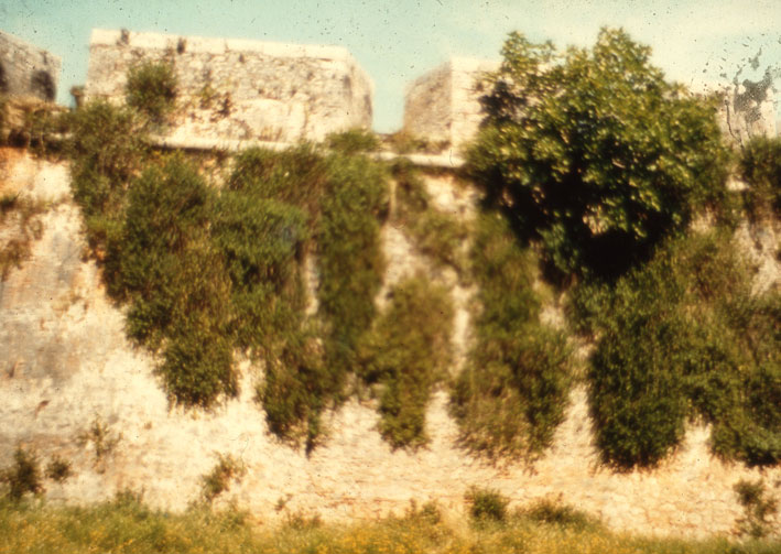 Ανάλογα σοβαρό πρόβλημα που έπρεπε να αντιμετωπιστεί ήταν η αφαίρεση της αυτοφυούς βλάστησης τόσο στις επιφάνειες των περιπολίων και των προμαχώνων, όσο και στα κεκλιμένα (εξωτερικά) και τα κατακόρυφα (εσωτερικά) τείχη της ακρόπολης (εικ. 21α-γ).