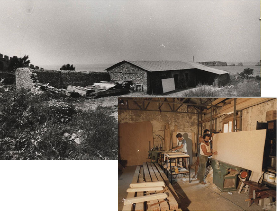 Για την κάλυψη των πολλαπλών αναγκών σε ξυλοκατασκευές και σιδηροκατασκευές τόσο στην ακρόπολη όσο και στο κτήριο των στρατώνων του Maison (πατώματα, πόρτες, παράθυρα, κιγκλιδώματα, ντουλάπια, κρεβάτια, τραπέζια, βιβλιοθήκες, πάγκοι) δημιουργήθηκαν δύο εργαστήρια στον μεγάλο περίβολο, σε ημικατεστραμμένες οικοδομικές κατασκευές του τουρκικού οικισμού, που ανακατασκευάστηκαν για αυτόν το σκοπό (εικ. 26, 27α-β, 28α-δ).