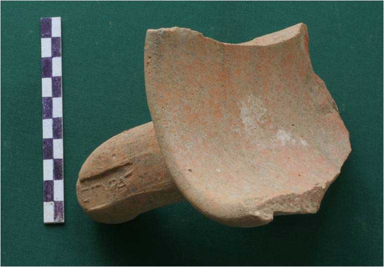 Μεταξύ του μεγάλου πλήθους οστράκων καλής ποιότητος που συλλέχθηκαν από την επίχωση του Κτιρίου Β ξεχώρισαν δύο λαβές αμφορέα με την εμπίεστη σφραγίδα του εργαστηρίου του: ΣΤΥΡΑΞ (εικ. 15).