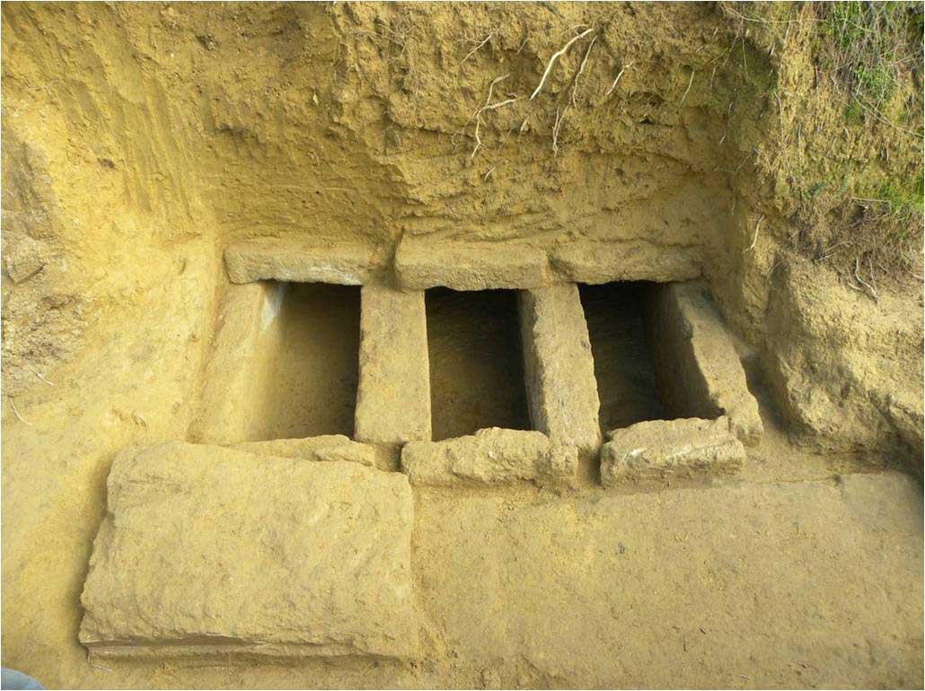 Ο ένας εκ των τριών τάφων ήταν ιδιαίτερα πλούσιος και περιείχε ένα ενδιαφέρον σύνολο κτερισμάτων, από τα οποία ξεχωρίζει ένα εξάλειπτρο του τέλους του 3ου αι. π.Χ. με επίθετες ανάγλυφες παραστάσεις (εικ. 23).