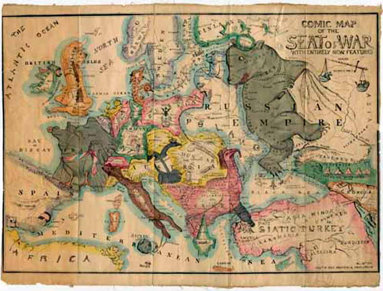 Ένα γιγάντιο μαύρο χταπόδι καλύπτει τη Ρωσία και απλώνει τα πλοκάμια του σε Ευρώπη και Ασία. Είναι η απειλή του τσαρισμού, με αφορμή τον Ρωσοτουρκικό Πόλεμο του 1877. Πρόκειται για έναν πολιτικοσατιρικό χάρτη που εκφράζει εύγλωττα το πολιτικό και διπλωματικό κλίμα κατά τη συγκεκριμένη περίοδο. Δημιουργήθηκε από τον Βρετανό Fred W. Rose στην καρδιά της εποχής, από τα 1850 περίπου έως τον Α’ Παγκόσμιο Πόλεμο, που ανθεί το είδος της σατιρικής χαρτογραφίας, η οποία στοχεύει στον σχολιασμό της εξαιρετικά περίπλοκης σχέσης ανάμεσα σε μεγάλα ευρωπαϊκά κράτη και αυτοκρατορίες.