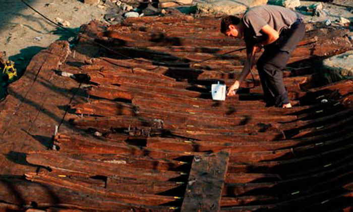 Τους πρώτους χριστιανικούς αιώνες ήταν πολλά τα πλοία που άραζαν κοντά σε αυτή την ακτή. Αργότερα η ακτογραμμή ανέβηκε ψηλότερα και τα ρεύματα γέμισαν με άμμο το μέρος εκείνο. Οι αρχαιολόγοι έχουν βρει συνολικά εκεί, στα 4 μέτρα κάτω από τον βυθό, κάπου εκατό χιλιάδες αντικείμενα — έναν ολόκληρο θησαυρό θαμμένο στην άμμο: αμφορείς, πέτρινες άγκυρες από την πρώτη περίοδο της ναυσιπλοΐας, ένα κουτί από ελεφαντόδοντο, υφάσματα. Το σπουδαιότερο εύρημα ήρθε όμως στο φως τώρα. Έπειτα από τρεις μήνες δουλειάς, η ομάδα των αρχαιολόγων ξέθαψε ένα τεράστιο σύμπλεγμα από ξύλα που είχαν ποτιστεί στο νερό σαν να ήταν σφουγγάρια. Επρόκειτο για ένα ρωμαϊκό πλοίο του 2ου αι., ένα κόσμημα 1.900 ετών.