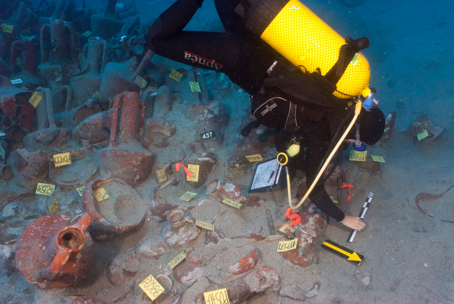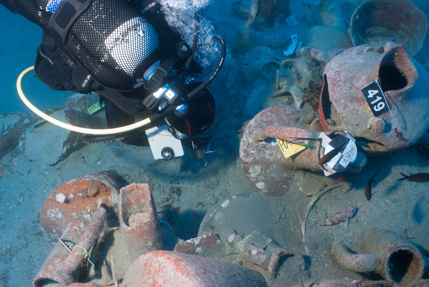 Κατά τη φετινή ερευνητική αποστολή ανοίχθηκαν δύο τομές στο βόρειο άκρο της συγκέντρωσης των αμφορέων όπου, σύμφωνα με τα πρώτα συμπεράσματα της ερευνητικής ομάδας, βρίσκεται η πρύμνη του αρχαίου πλοίου. Ένας από τους κύριους στόχους της ανασκαφής σε αυτήν την περιοχή ήταν να διαπιστωθεί η έκταση των υπολειμμάτων του αρχαίου σκαριού που διατηρείται κάτω από τα κεραμικά αγγεία του φορτίου.