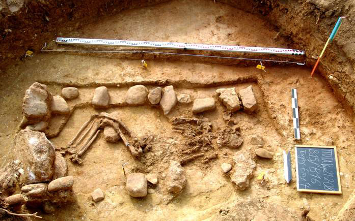 Οι μαρτυρίες κατοίκησης περιορίστηκαν σε ταφές μέσα σε κιβωτιόσχημους τάφους ή σε λάκκους, σε αποθέτες με κατάλοιπα της εποχής από τον οικισμό και σε μια μεγάλη, ίσως οχυρωματική τάφρο, κατεύθυνσης από Α-Δ, που συνοδευόταν από ανάχωμα ή λίθινο περίβολο. Οι διαστάσεις της τάφρου υπολογίζονται σε μήκος 45 μ., πλάτος 5 μ. περίπου και βάθος 1 μ. περίπου.