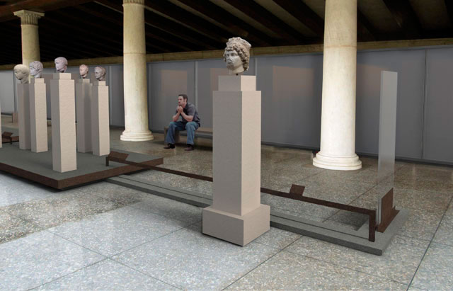 Οι παλαιές πωρολιθικές βάσεις των γλυπτών που διατηρήθηκαν στην έκθεση συντηρήθηκαν, ενώ απαιτήθηκε και η κατασκευή νέων βάσεων από χυτό υλικό.