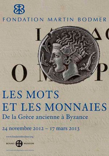 Σε ένα ταξίδι μέσα στο χώρο και το χρόνο προσκαλεί τους επισκέπτες η έκθεση «Les mots et les monnaies, de la Grèce ancienne à Byzance» («Λέξεις και Νομίσματα: Από την Αρχαία Ελλάδα στο Βυζάντιο») που διοργανώνει το Ίδρυμα Martin Bodmer της Γενεύης σε συνεργασία με το Μουσείο Μπενάκη και είναι εμπλουτισμένη με υλικό από τη Νομισματική Συλλογή του ΚΙΚΠΕ (Κοινωφελές Ίδρυμα Κοινωνικού και Πολιτιστικού Κέντρου) με τη μορφή δανείου στο Μουσείο Μπενάκη.