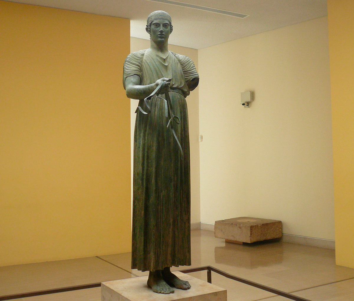 Αριστουργήματα της αρχαίας ελληνικής πλαστικής, όπως ο μικρός διαδαλικός κούρος και η χάλκινη ασπίδα κυπριακής προέλευσης του 7ου αι. π.Χ., ο σφυρήλατος ασημένιος ταύρος από τον αποθέτη της ιεράς οδού, η κεφαλή που αποδίδεται στον Απόλλωνα από χρυσελεφάντινο άγαλμα του 6ου αι. π.Χ., το ανάγλυφο με παράσταση του Οδυσσέα και κριαριού, τα αγαλμάτια αθλητών των Πυθίων του 5ου αι. π.Χ. και τέλος ο θαυμαστός Ηνίοχος, έργο των πρώιμων κλασικών χρόνων, θα δώσουν την ευκαιρία στον επισκέπτη να εστιάσει το βλέμμα του στην αστείρευτη καλλιτεχνική έμπνευση και δεξιοτεχνία των αρχαίων χαλκουργών που λάτρευαν ως προστάτη θεό τον χωλό Ήφαιστο, τον περίκλυτο θεό.