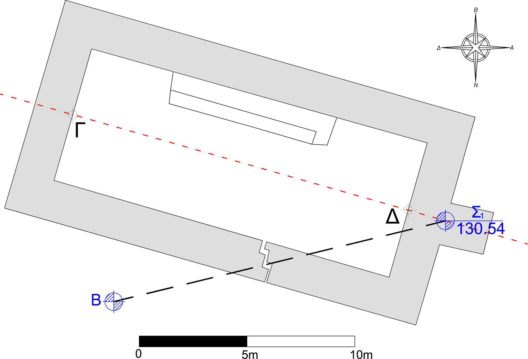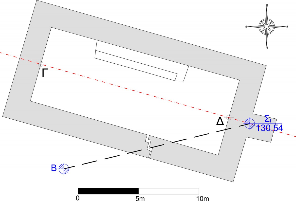 Από το ψηφιακό διάγραμμα της κάτοψης υπολογίστηκε το αστρονομικό αζιμούθιο της ευθείας ΓΔ, ίσο με 105°53′, με αβεβαιότητα ±3′.