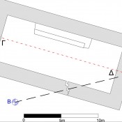 Παράλληλα προσδιόρισε τον προσανατολισμό του ναού ίσο με 107°50′.