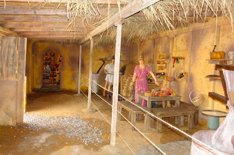 Ο επισκέπτης έχει τη δυνατότητα να ξεναγηθεί στα κτίσματα που περιέβαλλαν το αρχαίο αγρόκτημα, τα οποία είναι χτισμένα με πηλό και άχυρο και να δει γλυπτά σε φυσικό μέγεθος, που αναπαριστούν σκηνές από την αρχαία ζωή, καθώς και τα προϊόντα που χρησιμοποιούσαν οι αρχαίοι πρόγονοί μας για τη διατροφή τους. Επίσης έχει τη δυνατότητα να δοκιμάσει συνταγές ποιοτικής μεσογειακής κουζίνας στο σύγχρονο εστιατόριο που λειτουργεί στον Πολυχώρο.