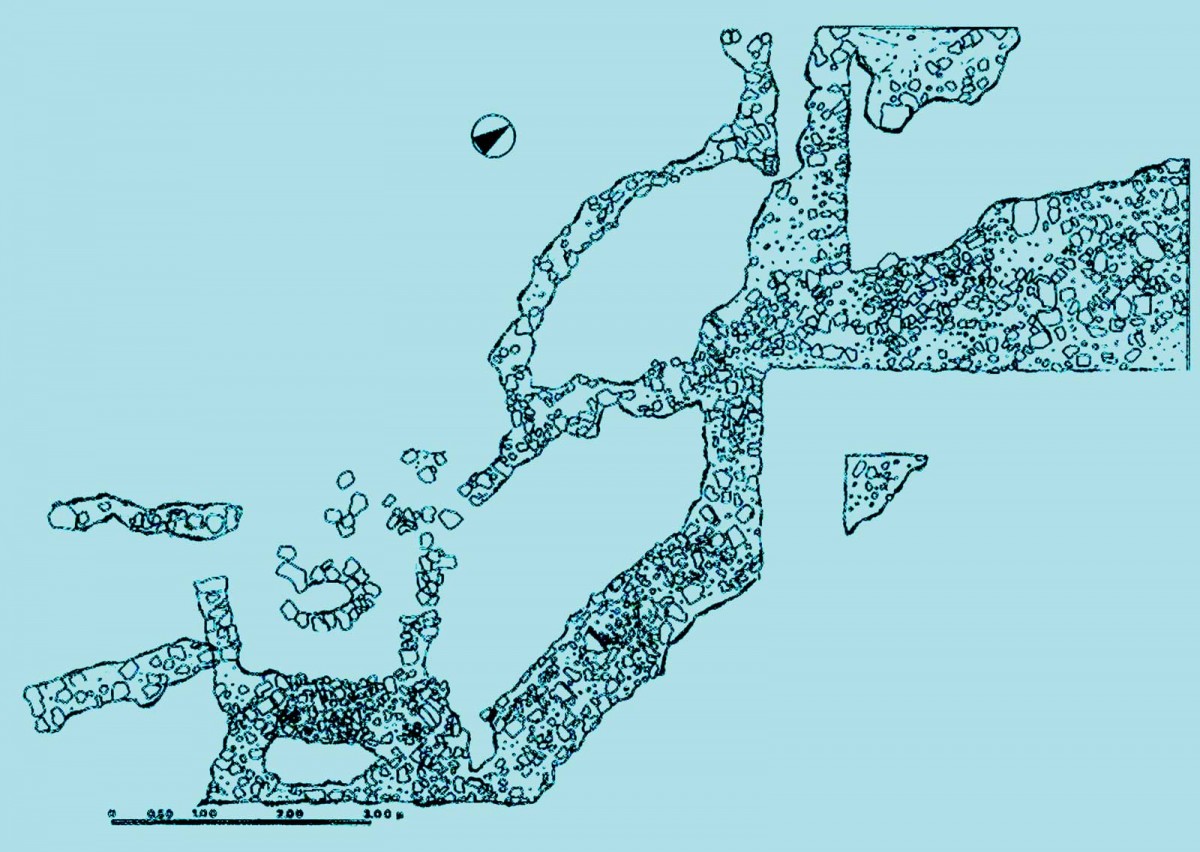 Στην κοιλάδα του ποταμού Γορμού στο Πωγώνι της Ηπείρου έχουν ερευνηθεί νεκροταφεία τύμβων και οικιστικά σύνολα (σημ. 3) από το τέλος της Ύστερης Εποχής Χαλκού και κυρίως στην Πρώιμη Εποχή Σιδήρου. Σε θέσεις στη Μερόπη, τον Παλαιόπυργο και την Κάτω Μερόπη αποκαλύπτονται τμήματα οικισμών με ομάδες καμπύλων κτισμάτων (εικ. 3), οργανωμένων σε μικρά πλατώματα επί ομαλών πλαγιών. Οι συγκεκριμένοι οικισμοί ορίζονται συχνά από περιβόλους αναλημματικού ή οχυρωματικού χαρακτήρα, όπως στο Λιατοβούνι Κόνιτσας και αργότερα στη Βίτσα Ζαγορίου και στον Αετό Φιλιατών (πρόσφατα ευρήματα της ΛΒ′ Εφορείας Προϊστορικών και Κλασικών Αρχαιοτήτων). Συνηθέστερη μορφή κάτοψης οικιών είναι η κυκλική, η ελλειψοειδής, ενώ σε μικρότερη συχνότητα απαντούν η πεταλόσχημη, η αψιδωτή και η μορφή σε σχήμα πέλματος. Οι τοίχοι των κτισμάτων διαθέτουν λίθινη υποδομή και ανωδομή από φθαρτά ελαφριά υλικά. Γενικότερα βρέθηκε εγχώρια χειροποίητη κεραμική και πήλινα σφονδύλια, εργαλεία από πυριτόλιθο και άλλα μικροαντικείμενα. Στο εσωτερικό αψιδωτής οικίας από την Κάτω Μερόπη εντοπίστηκαν εστία και δύο πιθάρια, ενώ στον πυθμένα ενός από αυτά υπήρχε μάζα ήλεκτρου-κεχριμπαριού βάρους 1.500 γρ. περίπου, σύνολο το οποίο δυστυχώς δεν μπορεί να ενταχθεί σε ακριβές χρονολογικό πλαίσιο.
