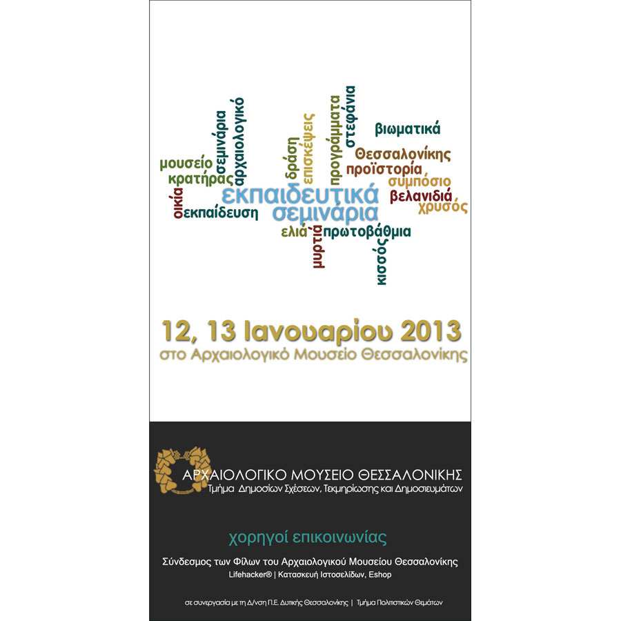 Βιωματικά επιμορφωτικά σεμινάρια για εκπαιδευτικούς της Πρωτοβάθμιας Εκπαίδευσης με θέμα «Σχολικές (επι-)σκέψεις στο Αρχαιολογικό Μουσείο Θεσσαλονίκης: Δημιουργήστε τις δικές σας διαδρομές», διοργανώνει το Αρχαιολογικό Μουσείο Θεσσαλονίκης σε συνεργασία με τη Διεύθυνση Πολιτιστικών Θεμάτων της Πρωτοβάθμιας Εκπαίδευσης Δυτικής Θεσσαλονίκης.
