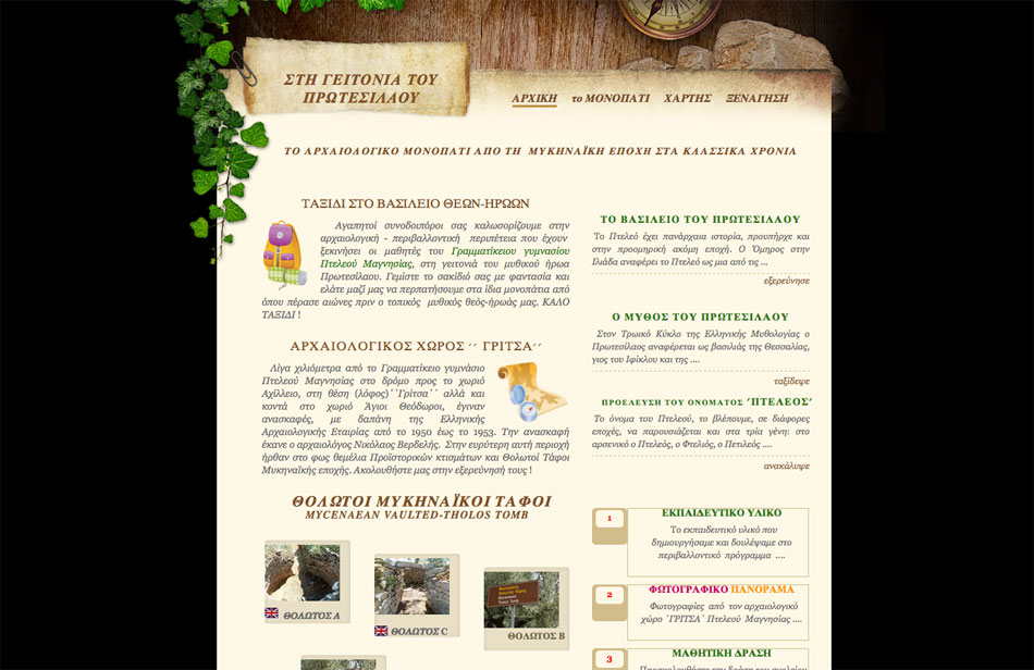 Στην ιστοσελίδα που συνοδεύει το πρόγραμμα (http://users.sch.gr/mmarsouvanidis/environmental/index.html), ο επισκέπτης μπορεί να βρει ενημερωτικό υλικό για τις ανασκαφές στην περιοχή, πλούσιο εκπαιδευτικό υλικό το οποίο δημιούργησαν οι μαθητές στη διάρκεια του προγράμματος, φωτογραφίες από τον αρχαιολογικό χώρο «Γρίτσα» και τις εργασίες για τη διάνοιξη του μονοπατιού, και φυσικά τον χάρτη του μονοπατιού.
