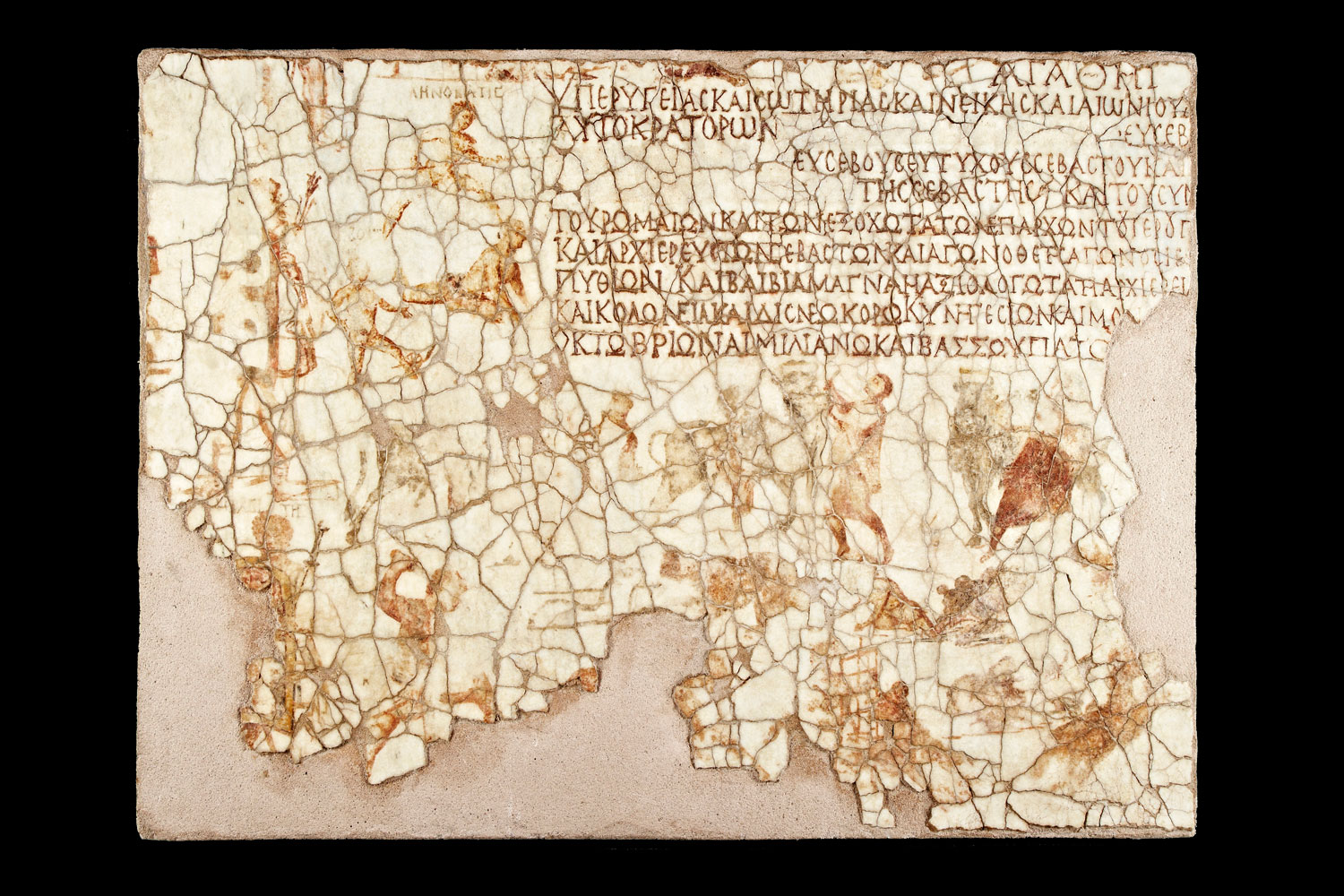Υπέρ υγείας και σωτηρίας και νείκης και αιωνίου διαμονής των μεγίστων και θειοτάτων κυρίων ημών αηττήτων αυτοκρατόρων…… (κενό) ευσεβούς…» (αναγράφεται στην επιγραφή).