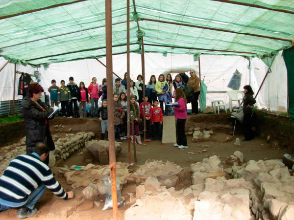 Οι μαθητές ενημερώθηκαν από τους αρχαιολόγους για την προϊστορία της περιοχής και παρακολούθησαν από κοντά τη διεξαγωγή της ανασκαφής συνομιλώντας με τα μέλη του ανασκαφικού συνεργείου.