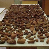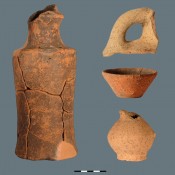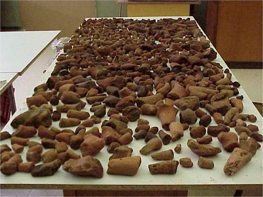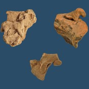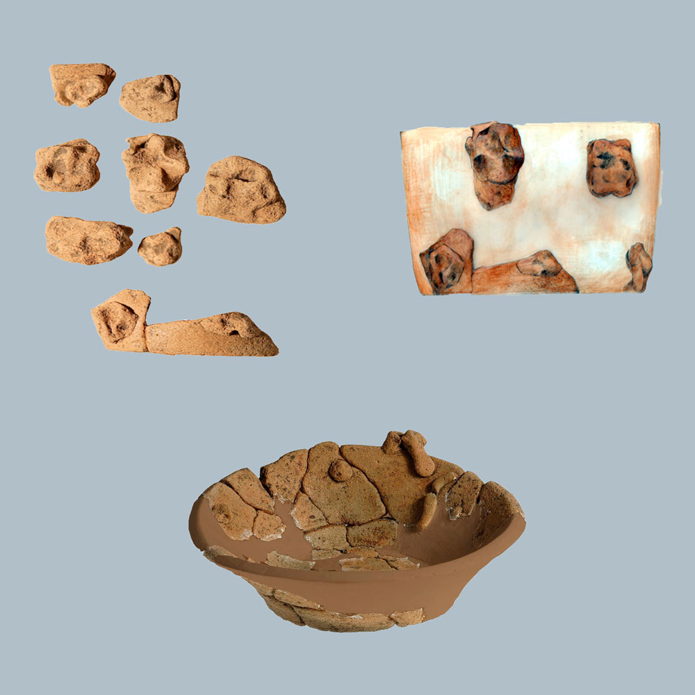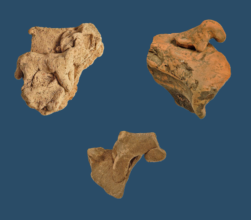 Το κύριο είδος ευρημάτων είναι τα ειδώλια, ανθρωπόμορφα και ζωόμορφα, εξαιρετικά πολυάριθμα και εξαιρετικά αποσπασματικά. Ελάχιστα είναι τα διατηρούμενα σε κάποιο ποσοστό που να επιτρέπει την αποκατάστασή τους. Ουσιαστικά έχουμε να κάνουμε με έναν τεράστιο αριθμό θραυσμάτων από διάφορα σημεία: πολύ συχνά πόδια και κέρατα, κεφάλια ή σώματα ή χέρια. Σχεδόν όλα είναι χειροποίητα. Αυτά κατά κανόνα θεωρούνται αναθήματα και εντάσσονται σε πλαίσια τελετουργικά, μολονότι δεν έχει κατανοηθεί πλήρως ούτε ο ρόλος τους, ούτε η αριθμητική τους εκτίναξη (κατά χιλιάδες μέσα σε λίγες δεκαετίες), ούτε η εικονοπλαστική τους σημασία (σημ. 8).