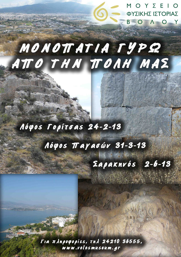 Το Μουσείο Φυσικής Ιστορίας Βόλου, στο πλαίσιο των εκπαιδευτικών προγραμμάτων, διοργανώνει πρόγραμμα για όλη την οικογένεια με τίτλο «Μονοπάτια Γύρω από την Πόλη μας». Περιλαμβάνει τη γνωριμία των κατοίκων της πόλης του Βόλου με φυσικά μνημεία, όπως πηγές, υπόγειοι υδροφορείς, σπήλαια, ρήγματα και αρχαία λατομεία γύρω από το πολεοδομικό συγκρότημα.