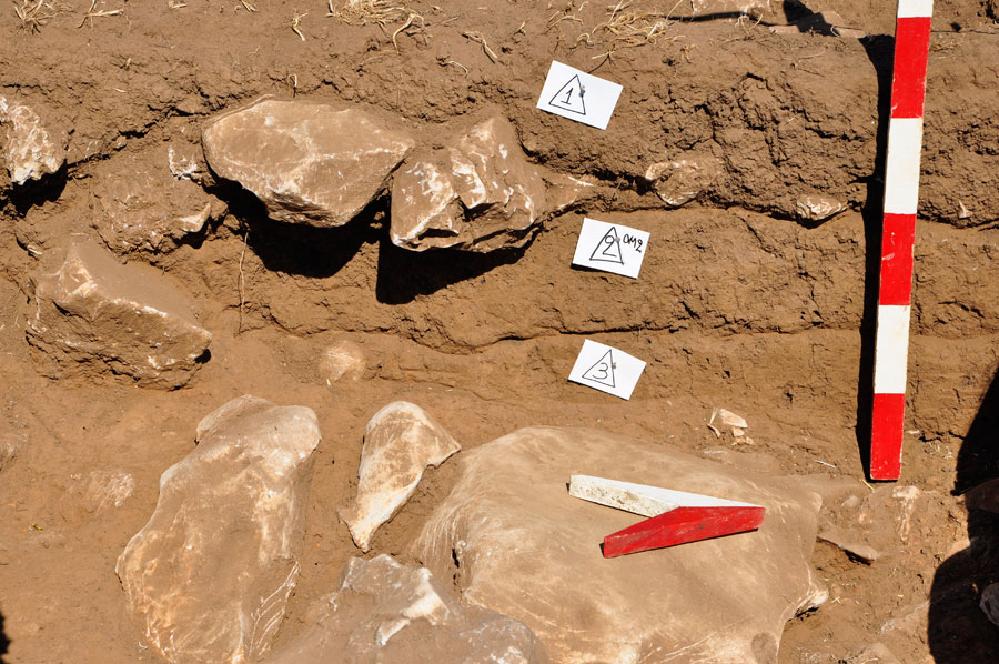 Η στρωματογραφία αυτή είναι περίπου η ίδια στις περισσότερες τομές του λόφου. Στο τελευταίο προς τα κάτω άνδηρο, το ευρύτερο, οι επιχώσεις ήταν πολύ μεγαλύτερες και οι τομές διαταραγμένες. Ήταν το σημείο όπου είχε γίνει η παλαιότερη ανασκαφή. Εκεί επικεντρώνεται η νεοανακτορική λατρεία, και οι τομές, μολονότι διαταραγμένες, έδωσαν σημαντικής ποιότητας ευρήματα, χάλκινους λατρευτές, χάλκινους μικρογραφικούς πελέκεις και τμήματα λίθινων αγγείων ανάμεσα στα οποία και ένα αιγυπτιακό, πιθανότατα του Αρχαίου Βασιλείου.
