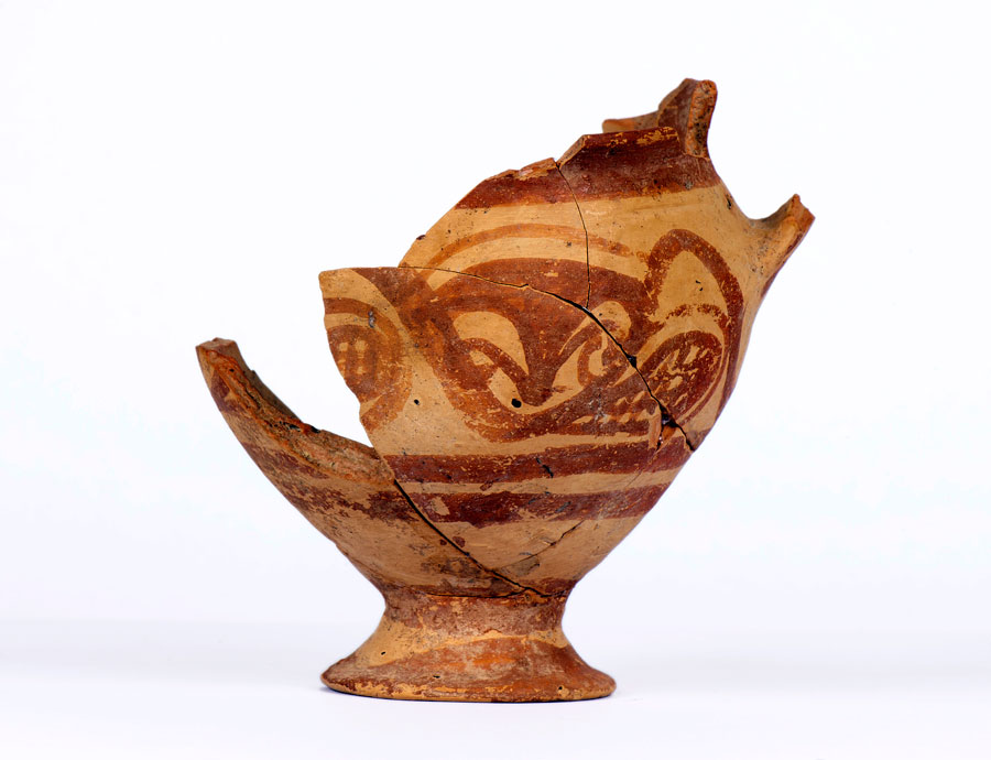Η κεραμική περιλαμβάνει μεγάλη ποικιλία σχημάτων αγγείων: χονδροειδή αγγεία, πίθους, αμφορείς, κύπελλα, φιάλες, σαλτσιέρες, αλλά και σπανιότερα σχήματα, όπως οι καρποδόχες. Σημαντικό εύρημα είναι ο πήλινος κρατευτής οβελού με ζωόμορφη απόληξη, ενώ έχει βρεθεί και πήλινο υποστατό ή πύραυνο με μορφή μάσκας. Πολύ συχνή είναι η ανάγλυφη σχοινοειδής διακόσμηση στα αγγεία, ενώ σπανιότερα απαντούν η εγχάρακτη και η γραπτή διακόσμηση. Στα ευρήματα που χρονολογούνται στην ΠΕ ΙΙΙ περίοδο συγκαταλέγονται τα χαρακτηριστικά αγγεία του τύπου «ουζοπότηρο» και τα πήλινα αγκυρόσχημα αντικείμενα.