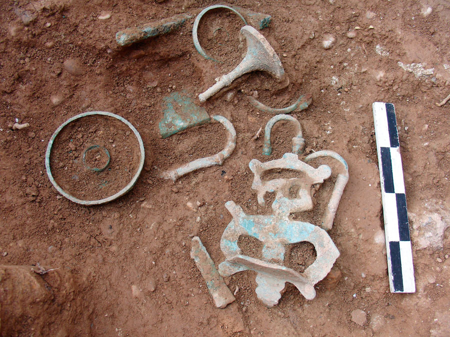 Τέλος, βρέθηκαν πολλά χάλκινα κοσμήματα, αλλά και ασημένια, όπως περίτεχνο βραχιόλι σε μορφή φιδιού, του οποίου η κεφαλή και η ουρά είναι επιχρυσωμένα· επίσης, ενώτια, περόνες, πόρπες και πολλά δακτυλίδια, σφραγιστικά ή απλοί κρίκοι.