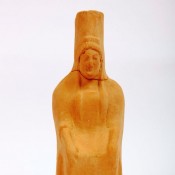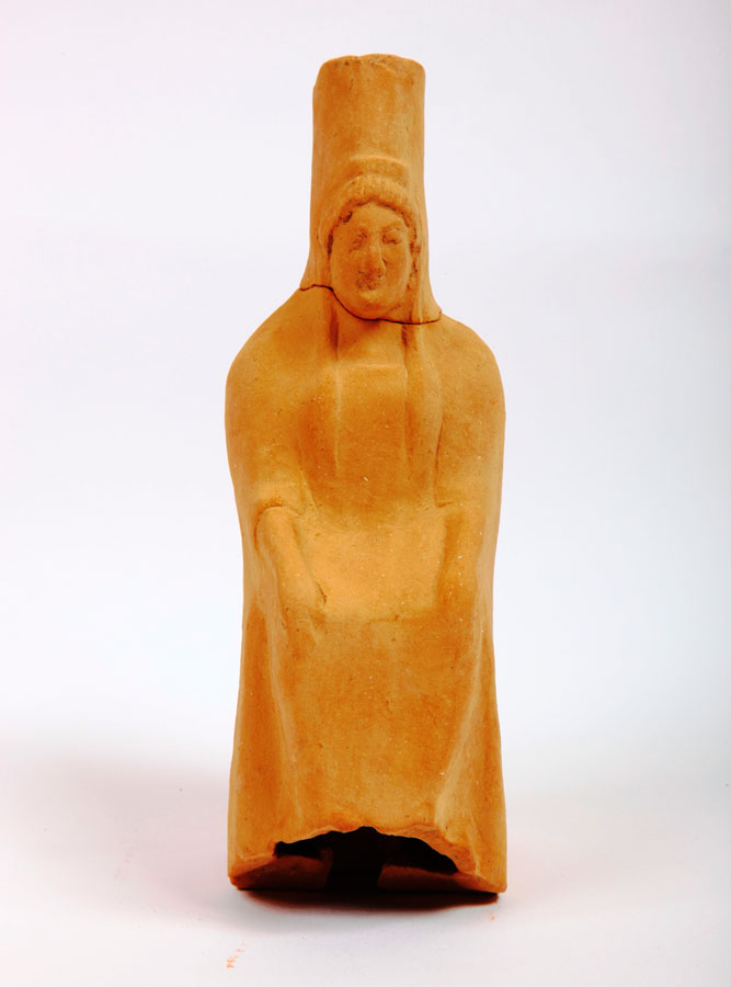 Η ανασκαφή του ιερού έφερε στο φως μεγάλο αριθμό πήλινων ειδωλίων, κυρίως γυναικείων μορφών. Τα πιο πρώιμα από αυτά είναι χειροποίητα και ανάγονται στα τέλη του 7ου-πρώιμο 6ο αι. π.Χ., ενώ στον 6ο και 5ο αιώνα επικρατεί ο τύπος της κόρης με πόλο, που κρατά πτηνό με το λυγισμένο χέρι στο στήθος και με το άλλο καρπό ή στεφάνι. Η ίδια μορφή απαντά και καθιστή, συνήθως με πτηνό στο στήθος.
