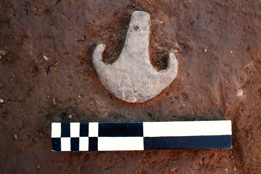 Επίσης, έχει βρεθεί μεγάλος αριθμός πήλινων υφαντικών βαρών, λίθινων τριβείων και τριπτήρων, λεπίδων και απολεπισμάτων οψιδιανού, αλλά και χάλκινα αντικείμενα, από τα οποία ξεχωρίζουν ένα εγχειρίδιο και ένα κόσμημα, περίαπτο, όπως δείχνει η οπή στο πάνω μέρος του.