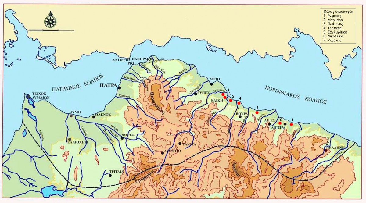 Η κατασκευή μεγάλων τεχνικών έργων στην Αχαΐα τα τελευταία πέντε χρόνια, της Ολυμπίας Οδού και της Νέας Σιδηροδρομικής Γραμμής Αθηνών-Πατρών (τμήμα Κιάτο-Ροδοδάφνη) είχε ως επακόλουθο τη διενέργεια εκτεταμένων ανασκαφών. Αρχικά διανοίχθηκαν εκατοντάδες δοκιμαστικές τομές στην πορεία του νέου οδικού άξονα που σε γενικές γραμμές ακολουθεί την υφιστάμενη Εθνική Οδό και της Νέας Σιδηροδρομικής Γραμμής, σε αρκετές από τις οποίες εντοπίστηκαν αρχαία κατάλοιπα. Οι περισσότερες θέσεις με αρχαία εντοπίστηκαν στο ανατολικό τμήμα της Αχαΐας, στην Αιγιάλεια. Η παραλιακή ζώνη από τα σημερινά σύνορα της Αχαΐας με την Κορινθία ως το Αίγιο παρουσιάζει πυκνή και συνεχή κατοίκηση από τη Νεολιθική εποχή ως τις μέρες μας. Τα ευρήματα από τις ανασκαφές που πραγματοποιούνται στην Αιγιάλεια είναι ιδιατέρως σημαντικά, μεταβάλλοντας στην κυριολεξία την εικόνα που είχαμε μέχρι τώρα για την περιοχή, με τον εντοπισμό νέων, άγνωστων θέσεων που χρονολογούνται από την Πρωτοελλαδική εποχή έως τους πρώτους χριστιανικούς αιώνες.