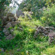 Η είσοδος στον οικισμό γινόταν από βόρεια μέσω της «Ξυλόπορτας», ελάχιστα ίχνη της οποίας σώζονται σήμερα. Στο νότιο τμήμα του οικισμού διακρίνονται ακόμη τα λείψανα ενός κατακρημνισμένου μεσαιωνικού πύργου (εικ. 13). Λίγο βορειότερα, στο διάβα της σημερινής οδού Αρκαδίου, βρίσκεται ένα «καστρόσπιτο» με στενόμακρες πολεμίστρες στην πρόσοψή του (εικ. 14). Ο τόπος είναι όμως και φυσικά οχυρός, ειδικότερα στα ανατολικά, όπου προστατεύεται από την απόκρημνη πλαγιά του Αράμνου. Εκεί υπήρχε, σύμφωνα με τους ντόπιους, μυστική (δι)έξοδος διαφυγής προς τα ορεινά (σημ. 12). Ο οχυρωματικός χαρακτήρας της Αμνάτου εντυπωσίασε τον Λατίνο αρχιεπίσκοπο Αθηνών L. Petit (1912-1926), ο οποίος ασχολήθηκε με τη βιογραφία του Αγίου Ιωάννη του Ξένου, που δραστηριοποιήθηκε στην περιοχή στα μέσα περίπου του 10ου αιώνα. Ο Petit, λοιπόν, αναφέρει ότι «μετά το χωριό Πηγή, ο Άγιος κατευθύνθηκε προς τα Ανατολικά, προς τα πιο κοντινά γειτονικά μέρη του Οχυρού της Αμνάτου που είχε 270 κατοίκους» (σημ. 13).