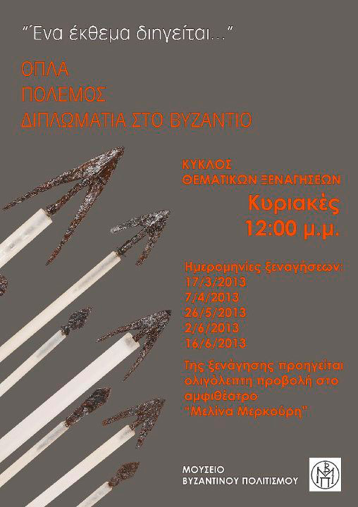 Της ξενάγησης προηγείται ολιγόλεπτη προβολή με θέμα «Όπλα και πόλεμος στο Βυζάντιο» στο αμφιθέατρο «Μελίνα Μερκούρη».