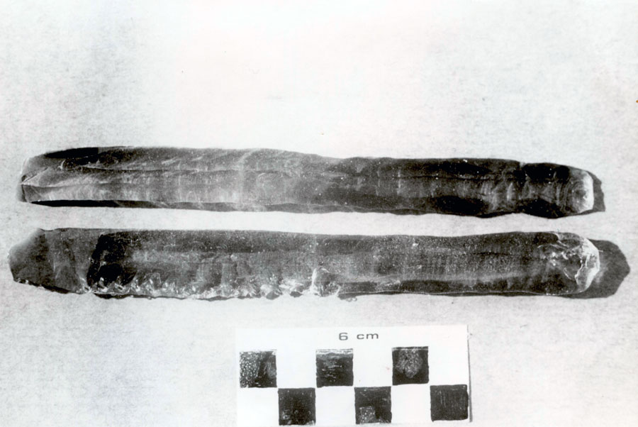 Τη δεκαετία του ’80 συνάντησα στην Εύβοια έναν βοσκό που τρόχιζε συστηματικά το μαχαίρι του με λεπίδα οψιανού που είχε βρει, βόσκοντας το κοπάδι του, στη ΠΕ θέση της Μάνικας. Συλλογή παλαιότερων εργαλείων τεκμηριώνεται και στην αρχαιότητα. Από τους οψιανούς του εργαστηρίου του Φειδία στην Ολυμπία ξεχωρίζουν δύο στερεότυπες λεπίδες (Schiering 1991, σ. 166, πίν. 62α), οι οποίες αναμφίβολα είχαν περισυλλεγεί από κάποιο σημείο του ιερού, δεδομένου ότι σε αυτό υπήρχε προϊστορική κατοίκηση και μάλιστα κατά την Τελική Νεολιθική και Πρώιμη Χαλκοκρατία.
