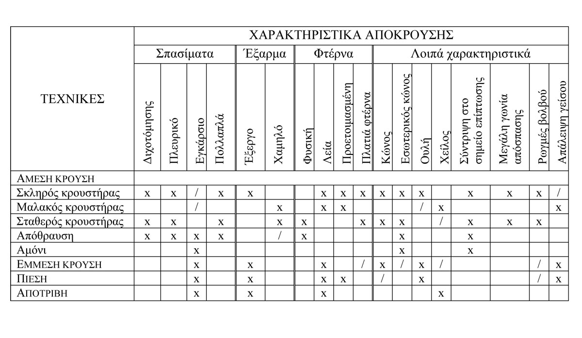 Σε γενικές γραμμές διαπιστώνουμε ότι αν εξαιρέσουμε τις αποκρούσεις που οφείλονται σε φυσικούς τυχαίους παράγοντες, η εσκεμμένη ανθρώπινη επέμβαση πάνω σε υλικά με μια σχετική ομοιογένεια, η οποία να επιτρέπει τη θραύση τους μπορεί να είναι μεταποιητικού αλλά και καταστροφικού χαρακτήρα ή και τα δύο (σημ. 38) και αφορά ως επί το πλείστον φυσικές πρώτες ύλες (πετρώματα) και σπανιότερα όπως είδαμε τεχνητές (π.χ. κεραμική, γυαλί, πορσελάνη) (εικ. 19-21). Ενίοτε, τα προϊόντα απόκρουσης, ως επί το πλείστον ασβεστόλιθου, για τη διαμόρφωση ορθογωνισμένων οικοδομικών λίθων, οι λατύπες, μπορούν να εκληφθούν ως προϊόντα προϊστορικής δραστηριότητας. Στην περίπτωση αυτή πρόκειται κατά κανόνα για μεγάλα αποκρούσματα μαλακών λίθων τα οποία σπάνια παράγονταν στο πλαίσιο των προϊστορικών λιθοτεχνιών, χωρίς ιδιαίτερα αλλοιωμένες επιφάνειες, με ανώμαλο κογχοειδές και γενικότερα κάτω όψη, απούσα, μηδενική ή στιγμόμορφη φτέρνα, χαρακτηριστικά τα οποία υποδηλώνουν τη χρήση σιδερένιου σφυριού. Τυχόν εσοχές που δίνουν την εντύπωση επεξεργασίας αλλά δεν φανερώνουν τύπους εργαλείων είναι τυχαίες και οφείλονται σε ανεξέλεγκτους ανθρωπογενείς ή φυσικούς παράγοντες. Παρόμοια σκληρά και ομοιογενή τεχνητά υλικά έχουν χρησιμοποιηθεί στο πλαίσιο προϊστορικών (Παντελίδου Γκόφα 1991· Adrymi-Sismani 2007, σ. 77, εικ. XIIr), αρχαίων (Ματζάνας 1997, σ. 262), παραδοσιακών (πρβλ. Runnels κ.ά. 1995, σ. 101, εικ. 92, 3) και εθνογραφικών κοινωνιών (Ματζάνας 2001α, σ. 64) για το δούλεμα του ξύλου ή του δέρματος και ως αντικατάστατα σκληρότερων πρώτων υλών αλλά και από το σύγχρονο πειραματισμό για διδακτικούς κυρίως σκοπούς, ελλείψει φυσικών υλών με ανάλογες ιδιότητες (π.χ. γυαλί αντί οψιανού) (εικ. 22-24). Τρέχουσα επίσης ήταν η πρακτική της περιστασιακής χρήσης του γυαλιού για το δούλεμα του ξύλου ή του δέρματος (πρβλ. Runnels κ.ά. 1995, σ. 101, εικ. 92, 3). Μέχρι πρόσφατα σε αγροτικές περιοχές της Ηλείας λείαιναν τους ξύλινους στειλεούς των εργαλείων με σπασμένες σκληρές πέτρες και γυαλί το οποίο έσπαζαν και χρησιμοποιούσαν την δίεδρη ακμή (πρβλ. χρήση γλυφίδας). Με γυαλί επίσης έξυναν το δέρμα των χοιρινών για την αφαίρεση του τριχώματος (ξέστρο). Τέλος, στα Σάλωνα αναφέρεται η χρήση κεραμίδας για το ξύσιμο του δέρματος κατά τη διαδικασία της κατεργασίας του (Σιμόπουλος 1976, σ. 707), ενώ στην Καστοριά ίσως χρησιμοποιούνταν πέτρα.