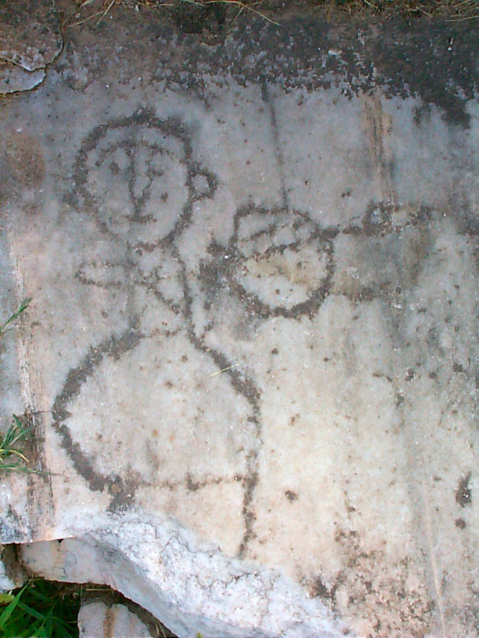 Περισσότερα από 4.000 χαράγματα-γκράφιτι εντόπισε, συγκέντρωσε και μελέτησε ο Έλληνας καθηγητής μετέχοντας στην ανασκαφή του πανεπιστημίου της Νέας Υόρκης, στην αρχαία Αφροδισιάδα (μια μικρή πόλη νότια της Σμύρνης, στις ακτές της Μικράς Ασίας, η οποία πήρε το όνομά της από τη θεά Αφροδίτη και στην περίοδο της ύστερης αρχαιότητας μετονομάστηκε σε Σεβαστούπολη). Στην Αφροδισιάδα –πόλη γνωστή από την αρχαιότητα για τα μάρμαρα και τη σχολή γλυπτικής της– ο Έλληνας καθηγητής εντόπισε χιλιάδες γκράφιτι χαραγμένα ή σμιλευμένα στο μάρμαρο, που διακρίνονται για την ποικιλία του περιεχομένου τους (από σχέδια επιτραπέζιων παιχνιδιών, προσευχές, θρησκευτικά σύμβολα, ονόματα αλλά και αισχρολογίες και πρόστυχες εικόνες ως διάθεση εξευτελισμού του αντιπάλου σε περιπτώσεις αθλητικών ή άλλων αγώνων).