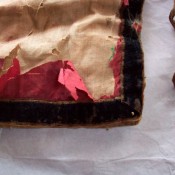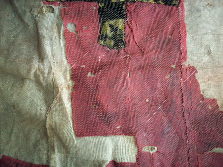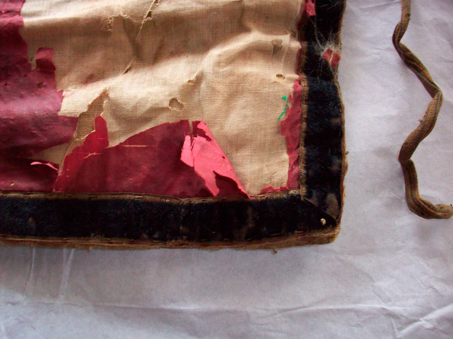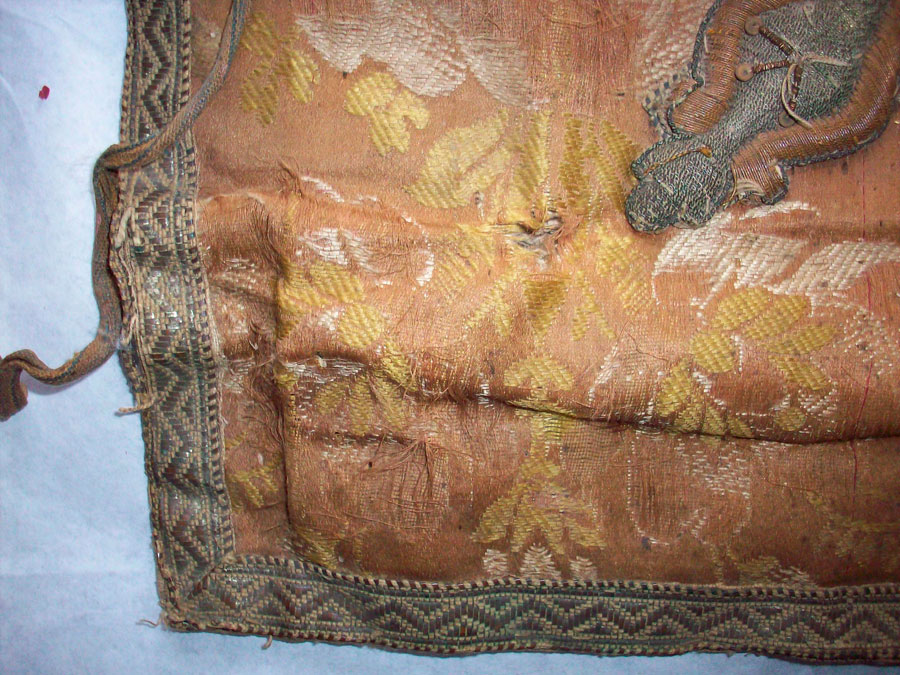 Το αντικείμενο έφερε αρκετές απώλειες υλικού και ελεύθερες ίνες (εικ. 3) λόγω της χρήσης αλλά και λόγω της κοπής τεμαχίων υφάσματος προς κατασκευή φυλακτών ως ευλογία.