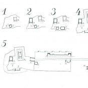 Υπόμνημα Πίνακα 5: α: Προϊστορικόν κυκλοτερές κτίσμα μετ’ εσχάρας-βωμού. Β: Νότιον πέρας της παλαιότερης κλίμακας. Γ: ίχνη κλίμακας.