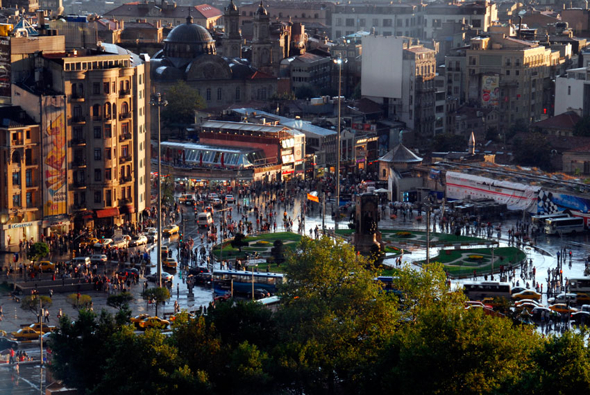 Το Ταξίμ είναι ένα σταυροδρόμι, μια μεγάλη διασταύρωση των δρόμων που διασχίζουν τους λόφους της πλευράς αυτής της νεότερης πόλης και διαχωρίζουν τις διάφορες περιοχές της (προς τον Γαλατά, το Πέρα, το Οσμάνμπεϊ, το Γκιουμούσουγιου, το Ντολάπντερε κ.λπ.). Γι’ αυτό και το Ταξίμ είναι ουδέτερο στο γένος (το σταυροδρόμι) και όχι θηλυκό (η πλατεία Ταξίμ).