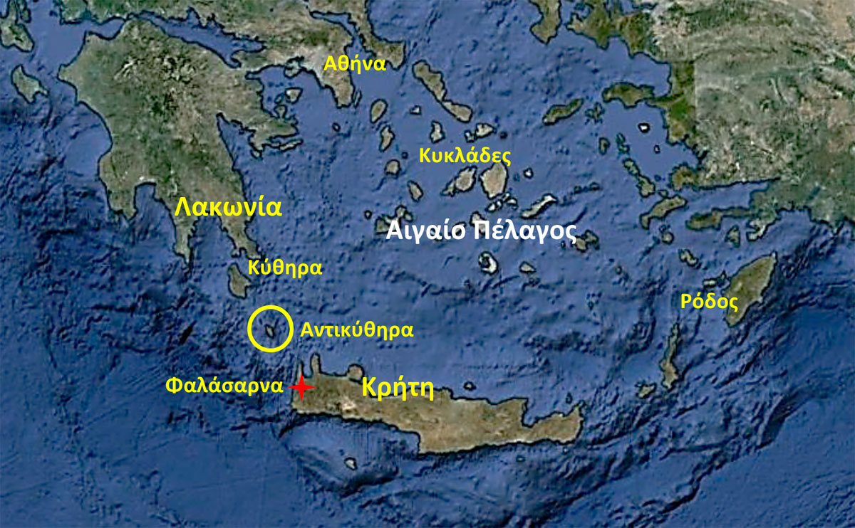 Τα Αντικύθηρα (εικ. 1), μικρό νησί με έκταση περίπου 20 τετρ. χλμ., βρίσκονται στον επικίνδυνο θαλάσσιο χώρο ανάμεσα στα Κύθηρα και την Κρήτη. Παρά τη στρατηγική θέση του νησιού, που ελέγχει το πέρασμα από το Αιγαίο και τον Εύξεινο Πόντο προς τη Δυτική Μεσόγειο, η δυσκολία επιβίωσης μεγάλης ομάδας κατοίκων στο νησί, το άφησε σε σχετική αφάνεια καθ’ όλη σχεδόν τη διάρκεια της αρχαιότητας.