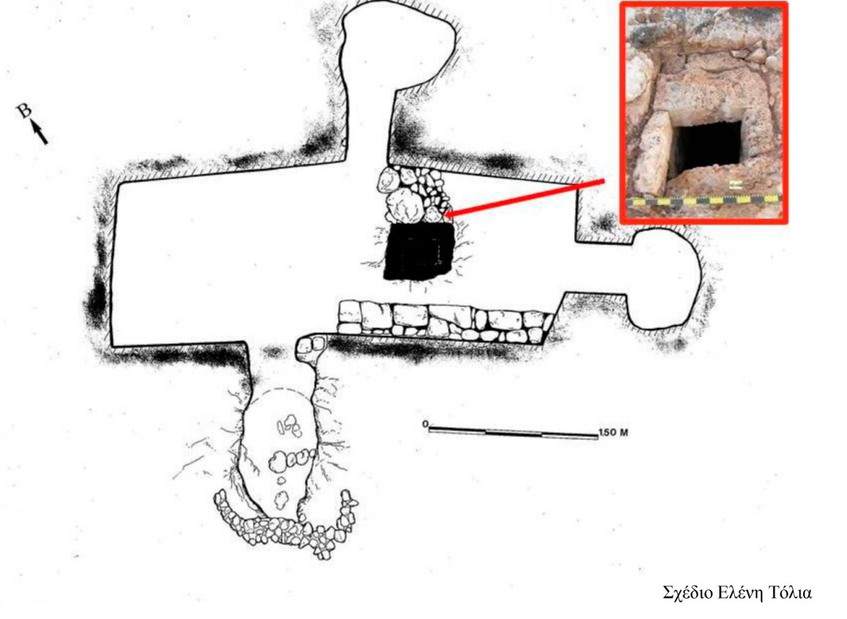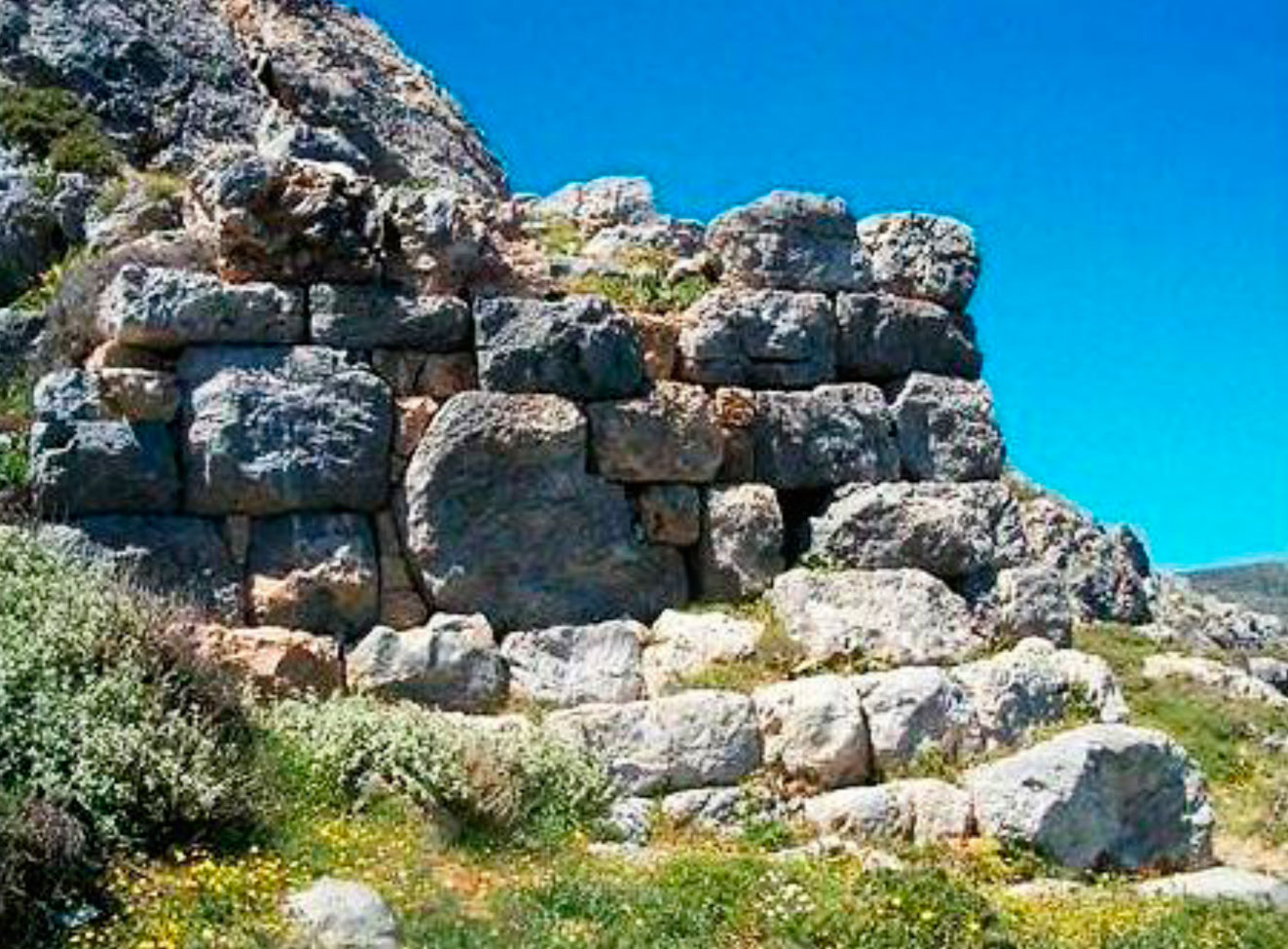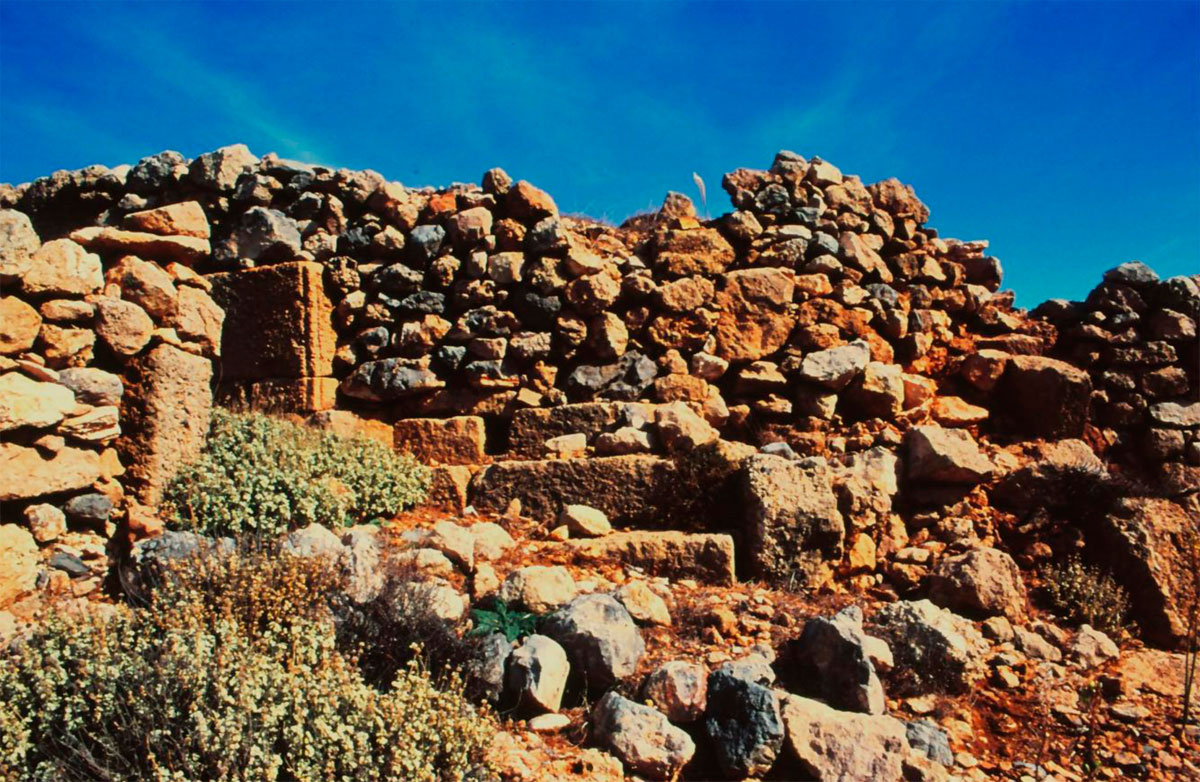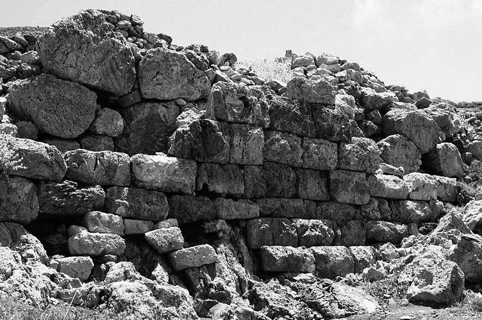 Το τείχος κάλυπτε όλη τη δυτική πλαγιά της χερσονήσου, από τη βραχώδη παραλία στα δυτικά και βόρεια έως την κορυφογραμμή προς τα ανατολικά (εικ. 19). Στο υψηλότερο σημείο μια δεύτερη γραμμή οχύρωσης περιόριζε το διοικητικό κέντρο της πόλης, την «Ακρόπολη». Στην Ακρόπολη βρισκόταν και η οικία του «ηγέτη» της πόλης προστατευμένη από τον ισχυρό βράχο που υψωνόταν στα ανατολικά της (εικ. 20), ενώ η πύλη της «Ακρόπολης» προς την πόλη ήταν και αυτή μνημειώδης, αλλά φαίνεται ότι από την αρχή της λειτουργίας της είχε καταστραφεί από εξωτερική επίθεση και η αποκατάστασή της έγινε με διαφορετικό σχέδιο (εικ. 21).