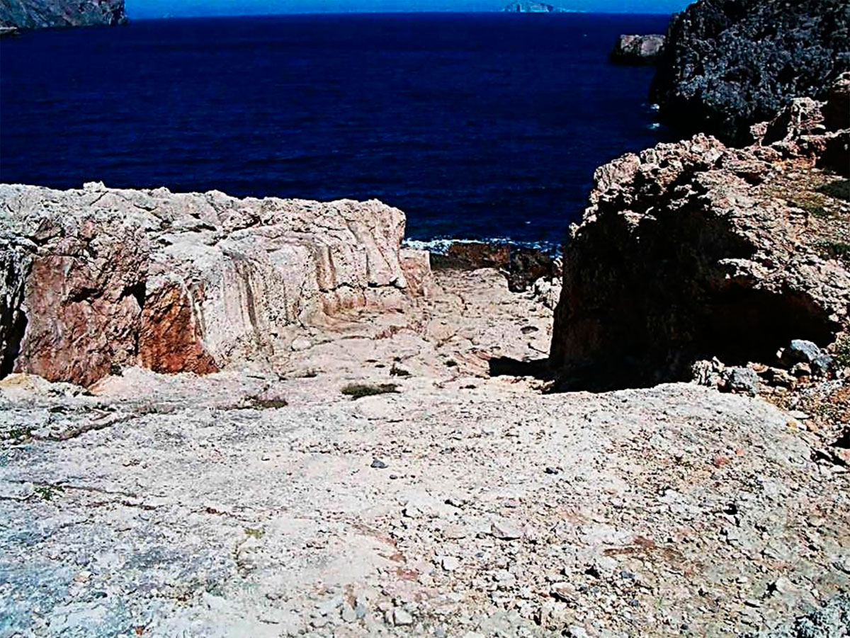 Η αρχαία πόλη ήταν κτισμένη στη δυτική πλαγιά της χερσονήσου του «Κάστρου» (εικ. 17). Στο νότιο τμήμα του τείχους που ήταν στραμμένο προς την ενδοχώρα του νησιού και ήταν προσβάσιμο από το εσωτερικό του νησιού άνοιγε μια δεύτερη πύλη, η «Νότια» στην οποία κατέληγε ένα πιο βατό μονοπάτι ανατολικά του λιμανιού (εικ. 18).