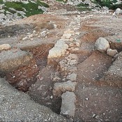 Στην ανατολική όχθη του ρέματος του Ξηροποτάμου δυο μονοπάτια οδηγούν στον οχυρωμένο οικισμό του «Κάστρου» (εικ. 12). Το δυτικό μονοπάτι πολύ κοντά στην παραλία, το οποίο έχει υποστεί σοβαρές αλλοιώσεις με το πέρασμα του χρόνου, ήταν στενό και δεν επέτρεπε τη διέλευση τροχοφόρων. Σε πολλά σημεία διακρίνεται ακόμα το προστατευτικό ανάλημμα, καθώς και λαξευμένα ή διαμορφωμένα με λίθους σκαλοπάτια. Δέκα περίπου μέτρα νοτίως της πύλης που οδηγεί στην πόλη, στο βράχο στον οποίο έχει διαμορφωθεί το μονοπάτι διασώζεται ένα «βραχώδες» ιερό με δύο κόγχες και ένα θρανίο (εικ. 13). Πρόκειται για ένα ιερό, εξωτερικά της πύλης που οδηγούσε μόνο στη δεξιά (ανατολική) όχθη του λιμανιού, προορισμένο για όσους θα έφευγαν ή επέστρεφαν από θαλασσινό ταξίδι. Η πύλη του οχυρού στο τέλος του μονοπατιού, η «Νοτιοδυτική Πύλη», είχε μια σχετικά επιμελημένη και διακοσμημένη μορφή αν κρίνουμε από μερικά αρχιτεκτονικά μέλη που βρέθηκαν στο χώρο (εικ. 14, 15, 16).