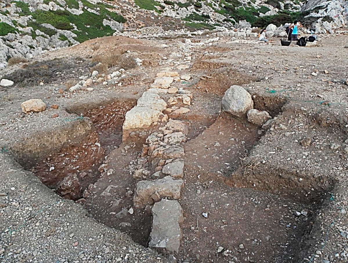 Το 1888 αγροτικές εργασίες στο χώρο έφεραν στο φως ένα ακέφαλο άγαλμα στον τύπο του «Κιθαρωδού Απόλλωνος» (εικ. 2) και η έρευνα που διενήργησε ο Βαλέριος Στάης (σημ. 12) αποκάλυψε μια ενεπίγραφη βάση αναθηματικού μνημείου (πιθανότατα αγάλματος) που ανέφερε την προσφορά στον «Αἰγιλιέα» Ἀπόλλωνα από τον Ἀριστομένη Ἀριστομήδους, Θετταλό ἐκ Φερῶν και από τον Νίκων(α) Κηφισοδώρου, Ἀθηναῖο (εικ. 3). Από τα δύο (σημ. 13) αυτά μνημεία και από τα ευρήματα της ανασκαφής, φάνηκε ότι στο χώρο λειτουργούσε, καθ’ όλη τη διάρκεια των Ελληνιστικών χρόνων, ιερό Απόλλωνος και Αρτέμιδος (εικ. 4). Η ανασκαφική έρευνα αποκάλυψε, τα έτη 2004 και 2005, το θεμέλιο του αρχαίου ναού που είχε τη μορφή οἴκου, καθώς και τη βάση του βωμού του (εικ. 5). Ο άξονας του ναού έχει κατεύθυνση Ν-ΝΔ προς Β-ΒΑ με κλίση 450 από την παράλληλο, στην ευθεία της Δήλου. Ο περίβολος του ιερού είναι πολύ ισχυρός και φαίνεται ότι βρισκόταν σε επαφή με το λιμάνι (εικ. 7). Από τα κινητά ευρήματα που βρέθηκαν με τις ανασκαφές, εκτός από το άγαλμα και την ενεπίγραφη βάση, ξεχωρίζουν σπαράγματα μαρμάρινων αγαλμάτων και αγγείων (περιρραντήριο), πολλές αιχμές από βέλη, αφού είναι γνωστό ότι ο Απόλλων είχε διδάξει στους Κρητικούς την τέχνη του τοξεύειν, καθώς και πλήθος νομισμάτων με παράσταση του Απόλλωνος και της Αρτέμιδος, αλλά και κοσμημάτων, δακτυλιόλιθων και ενωτίων (εικ. 8, 9, 10, 11).