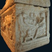 »Στην αριστερή πλευρά της σαρκοφάγου εικονίζεται προετοιμασία και αποχαιρετισμός πολεμιστή (του Έκτορα;), οπότε οι δύο πλευρικές σκηνές φαίνεται ότι συμπληρώνουν εικονογραφικά και χρονικά την κεντρική σκηνή. Η νεοαττική σαρκοφάγος χρονολογείται στα τέλη του 1ου αι. και όχι αργότερα από το 200 μ.Χ.»