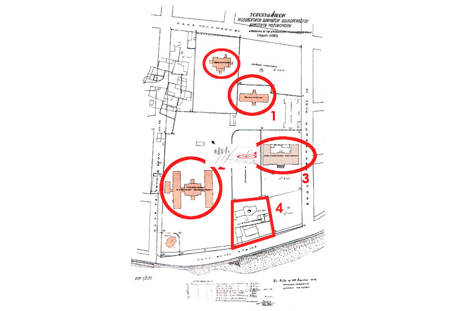Οι νεωτερισμοί στην αρχιτεκτονική, ιδιαίτερα την πρώτη εικοσαετία του 20ού αιώνα, δεν συνοδεύτηκαν από αντίστοιχο ενδιαφέρον για το σχεδιασμό και τη χωροθέτηση του δημόσιου χώρου. ΄Ετσι, μια σειρά από δημόσια κτίρια κατασκευάζονται στο ανατολικό όριο της πόλης, εκτός του τότε εγκεκριμένου ρυμοτομικού σχεδίου, με δωρεές εύπορων Αιγυπτιωτών (εικ. 3).