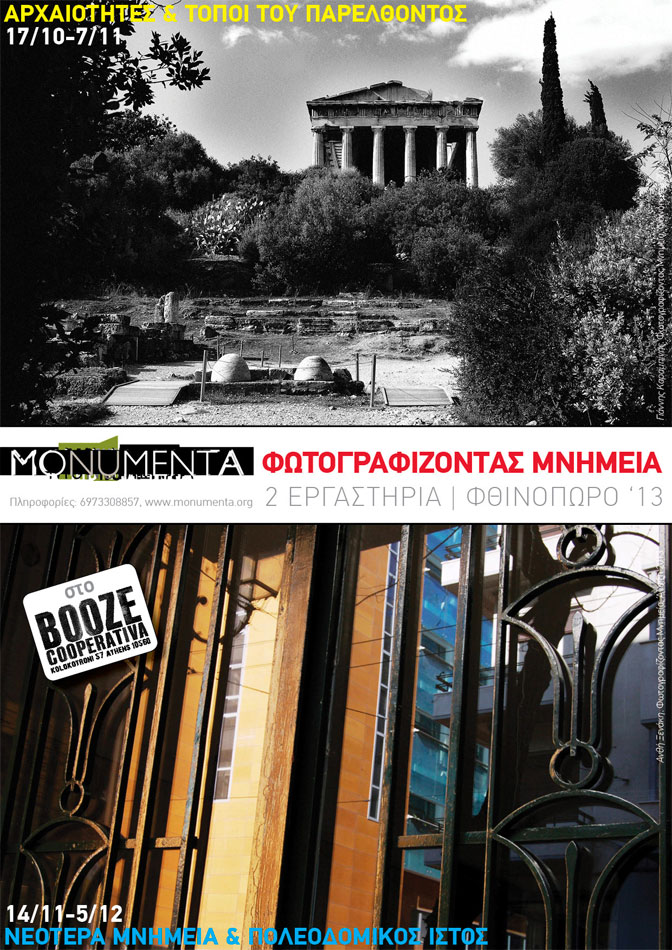 Τον 3ο κύκλο του εργαστηρίου φωτογραφίας «Φωτογραφίζοντας Μνημεία», που ξεκίνησε το 2012, διοργανώνει η MONUMENTA. Στον νέο κύκλο που αποτελείται από δύο μικρότερα εργαστήρια οι συμμετέχοντες θα μάθουν: