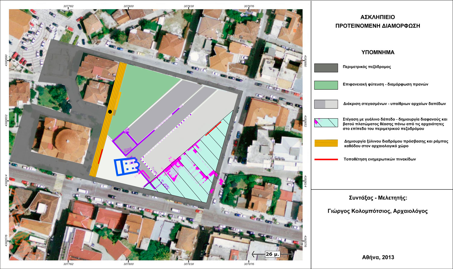 -Αποκατάσταση της αρχικής μορφής του χώρου, βάσει των στοιχείων που θα αποκαλυφθούν.