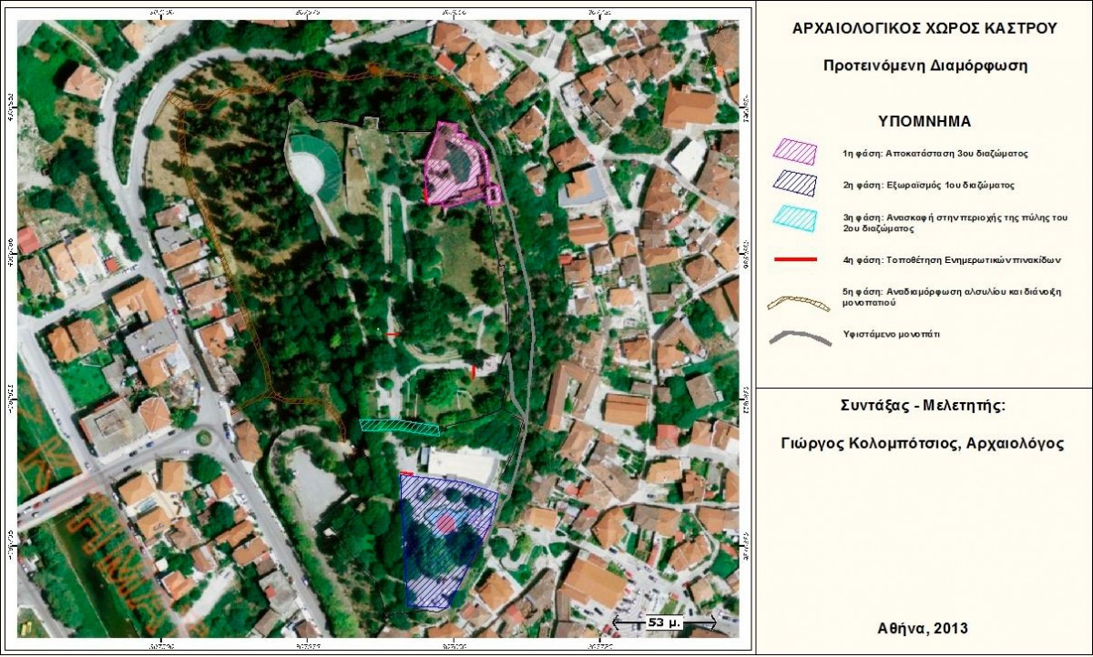 α) Ανασκαφική διερεύνηση: Προτείνεται η ανασκαφική διερεύνηση της περιοχής της πύλης εισόδου στο δεύτερο επίπεδο, όπου σύμφωνα με την παράδοση υπήρχε στα βυζαντινά χρόνια ο ναός των Ταξιαρχών, κατάλοιπα του οποίου δεν έχουν εντοπιστεί μέχρι σήμερα.