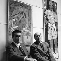 Επανάσταση σε ό,τι έκανε μέχρι τότε. Διαφωνεί με τις απόψεις του Κόντογλου περί ζωγραφικής και σταματά τη μαθητεία μαζί του. Αντιδρώντας, ζωγραφίζει σουρεαλιστικά σχέδια και αφηρημένους πίνακες, ενώ επηρεασμένος από τον Dali, γράφει και σουρεαλιστικά ποιήματα. Μαζί με τον Κάρολο Κουν και τον Διονύση Δεβάρη ιδρύουν τη Λαϊκή Σκηνή. Ταξιδεύει στη Σμύρνη και την Κωνσταντινούπολη με το Λύκειο Ελληνίδων για το Balkan Festival. Στο πλοίο βλέπει για πρώτη φορά ζεϊμπέκηδες και εντυπωσιάζεται.