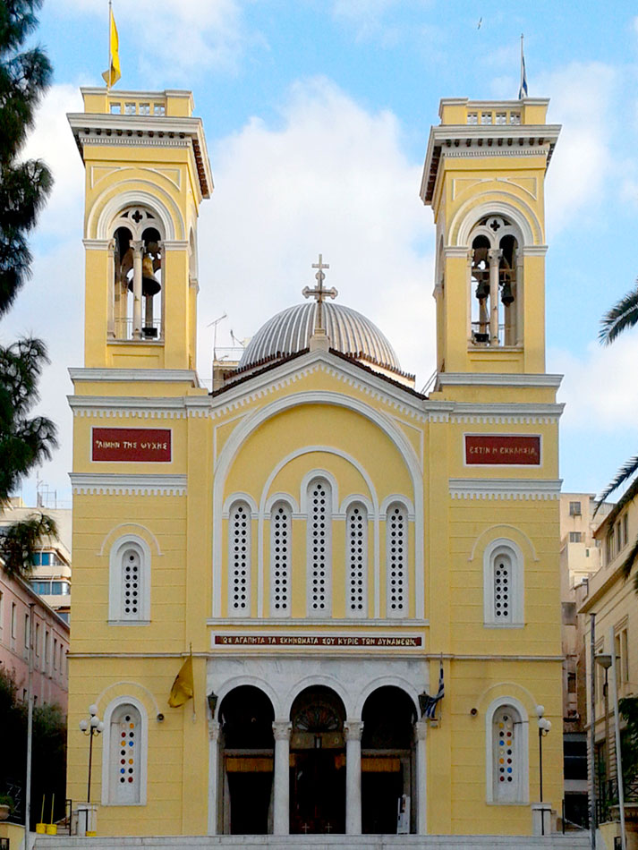 Ο εμβληματικός ναός του Αγίου Σπυρίδωνα Πειραιά, στο κέντρο της πόλης, θεμελιώθηκε στα ερείπια περιώνυμης μονής του 11ου ή 12ου αιώνα, τον Μάιο του 1863. Το αρχικό σχέδιο ήταν του αρχιτέκτονα Σταμάτη Κλεάνθη, σύμφωνα με τα νεοκλασικά πρότυπα, ωστόσο αυτό τροποποιήθηκε από τον Γερμανό Έντουαρντ Σάουμπερτ. Πρόκειται για βασιλική με εγκάρσιο κλίτος και οκτάπλευρο τρούλο. Ο ζωγραφικός διάκοσμος του κηρυγμένου από το ΥΠΠΟ ως μνημείου ναού περιέχει δείγματα ζωγραφικής του 19ου αιώνα, που ανήκουν στο ρεύμα των Ναζαρηνών. Οι τοιχογραφίες εμφανίζουν μεταξύ άλλων επικαθίσεις ρύπων και αιθάλης, απολέπιση και κονιορτοποίηση του ζωγραφικού στρώματος και απώλειες στη ζωγραφική επιφάνεια.