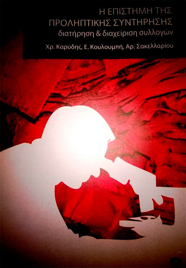 Χρήστος Καρύδης, Ελένη Κουλουμπή, Αριστοτέλης Σακελλαρίου (επιμ.), Η επιστήμη της προληπτικής συντήρησης. Διατήρηση και διαχείριση συλλογών, Εκδόσεις Time Heritage, Αθήνα 2013, 406 σελ.